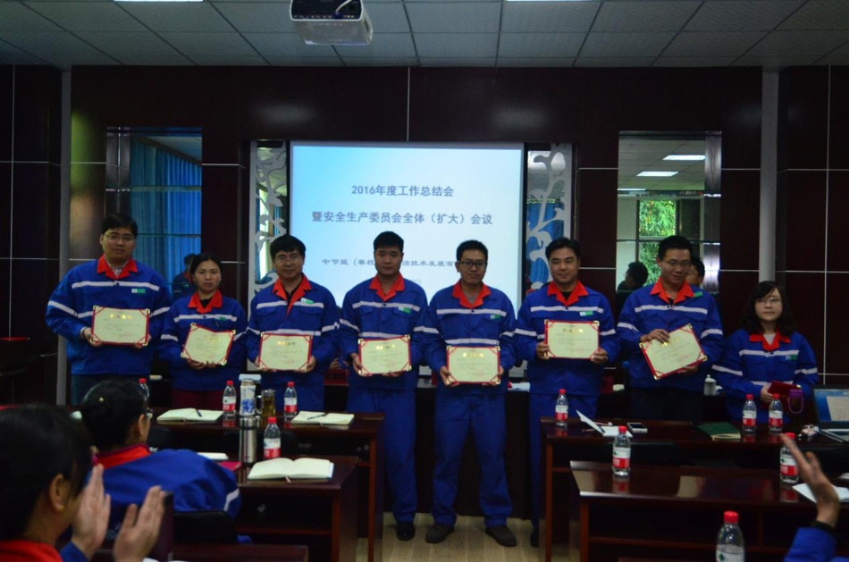 2017年1月22日,中節(jié)能(攀枝花)清潔技術(shù)發(fā)展有限公司召開了2016年度工作總結(jié)會暨安全生產(chǎn)委員會全體擴(kuò)大會。會議傳達(dá)了上級公司關(guān)于安全生產(chǎn)工作的有關(guān)精神,宣貫了“安全九條禁令”和關(guān)于安全、環(huán)保刑事犯罪“兩高”司法解釋。各部門負(fù)責(zé)人分別與公司簽訂了《2017年安全環(huán)保目標(biāo)責(zé)任書》,中層以上管理人員及核心崗位人員分別與公司簽訂了《廉潔從業(yè)責(zé)任書》。會議宣讀了中國環(huán)境保護(hù)集團(tuán)公司、中節(jié)能清潔技術(shù)發(fā)展有限公司關(guān)于表彰2016年度先進(jìn)集體和先進(jìn)個(gè)人的決定,宣讀了攀枝花公司表彰2016年度先進(jìn)個(gè)人決定,對獲得表彰的先進(jìn)班組和先進(jìn)個(gè)人頒發(fā)了榮譽(yù)證書。