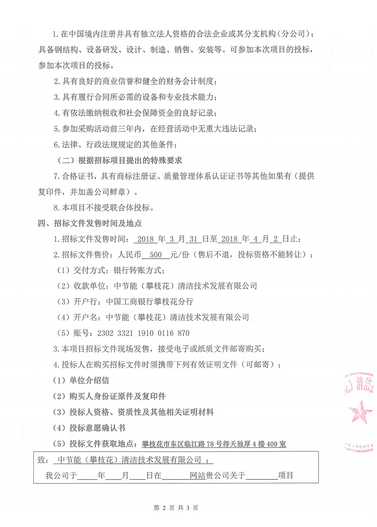 焚燒車間設備技術改造非標加工件項目招標公示