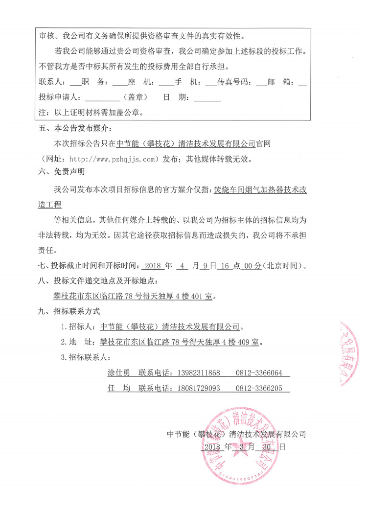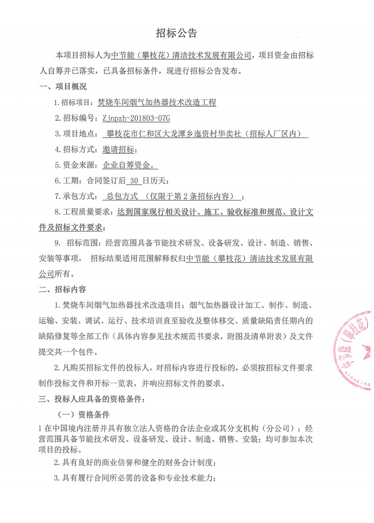 焚燒車間煙氣加熱器技術改造工程招標公告